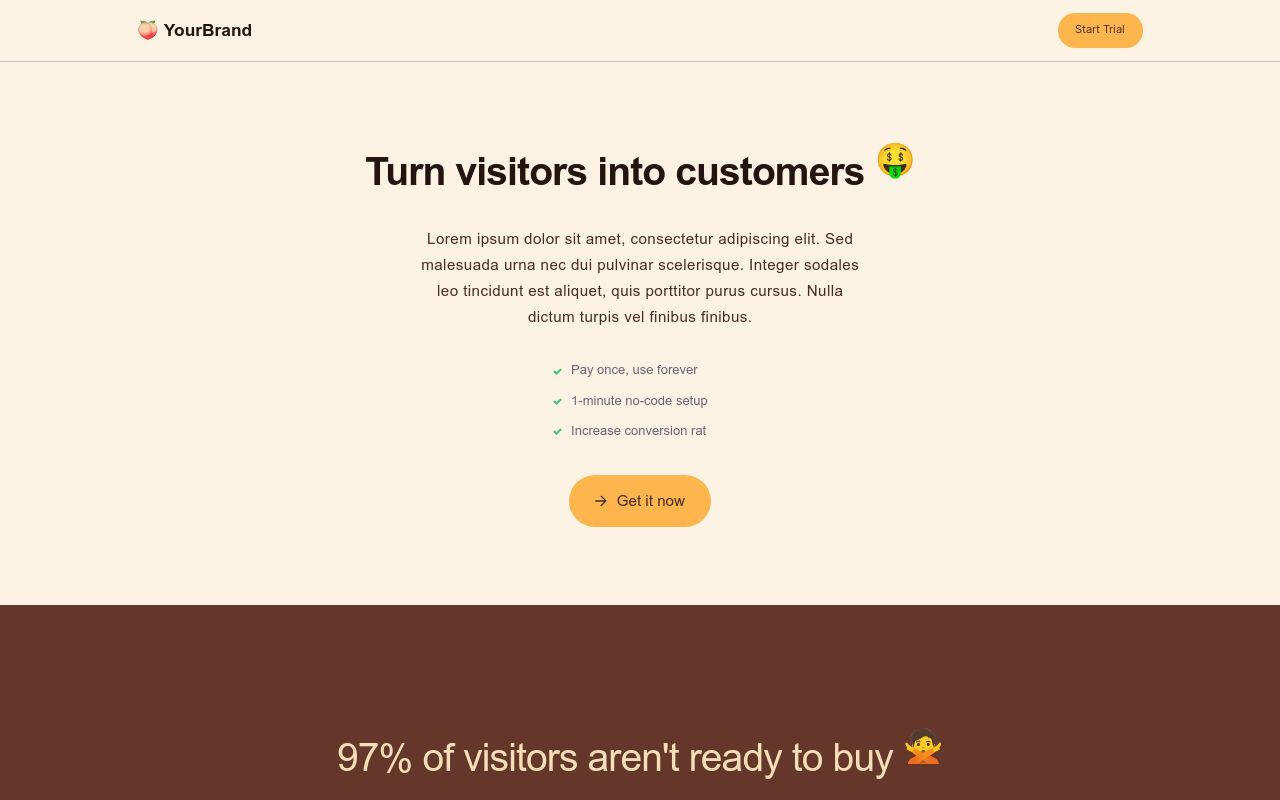Kickstart your agency or design service with our versatile landing page template. Promote your services, showcase your portfolio, display client testimonials, and effortlessly collect leads with our user-friendly contact form.